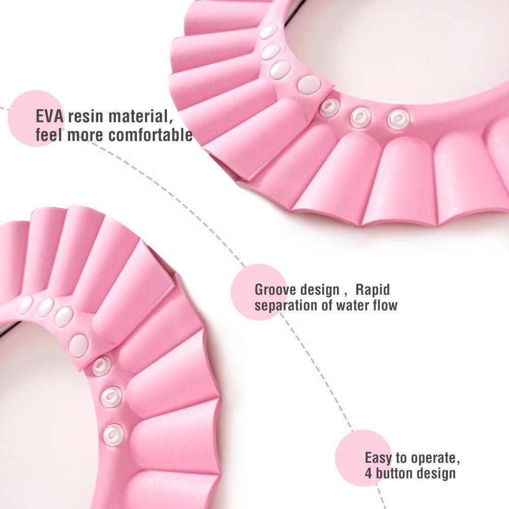 - SAVE YOU BABY'S EARS: When water enters the baby's ears, it can cause infection and inflammation. No more water runs into your baby's ears using our shower cap.